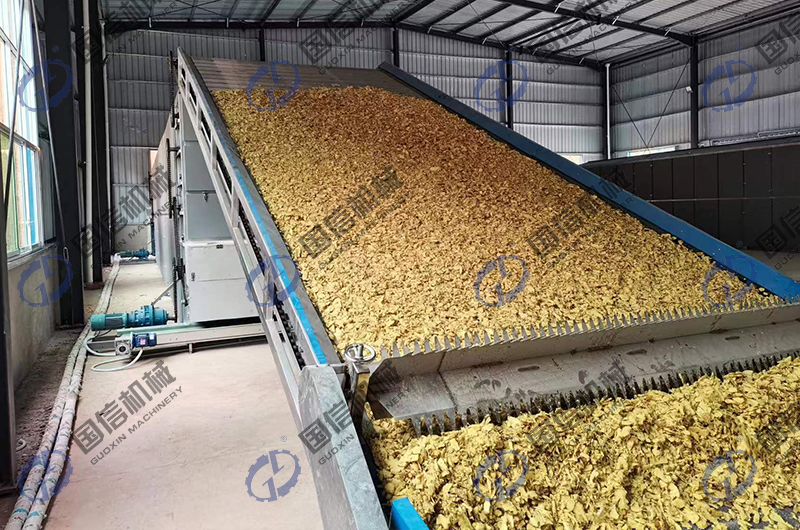 在貴州惠水縣,劉老板自己開設了生姜加工帶烘干企業,每天的烘干需求量非常的巨大,但是由于環保政策的影響,燃煤不可用,經過協調后,當地的生物質顆粒正好可以使用,為此,我們向客戶提供了一套可以日處理鮮貨達15噸以上的大型生姜烘干生產線設備。